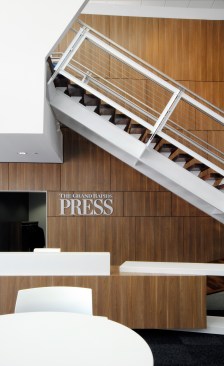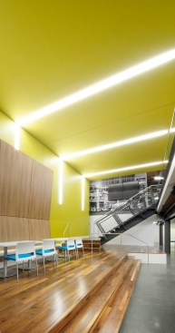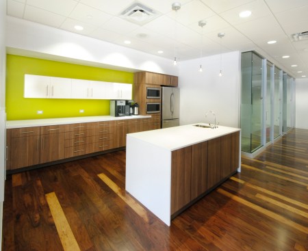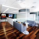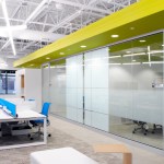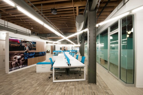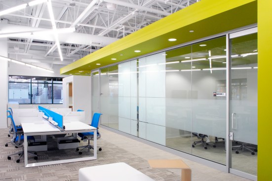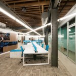 We applied furniture that is light and mobile, reflecting the active environment. The open collaboration spaces allow staff to seamlessly switch from focused work to quick team meetings, changing postures and positions. Because of the fluid nature of the space, open areas are lit with a random array of strip fixtures, resembling pick-up sticks. This allows the furniture to be easily reconfigured as it is not tied to an overhead grid.