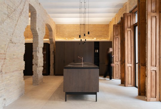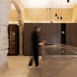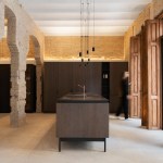 The only intervention, a few apparently simple horizontal white bands around the perimeter, subtly placed above the dividing walls, to allow for the installation of the plumbing, electricity and sound system that provide service to the space. Such service also includes the indirect illumination that bathes the brick structures, the projectors that light up the vaults, and the hanging luminaires that illuminate every subspace.