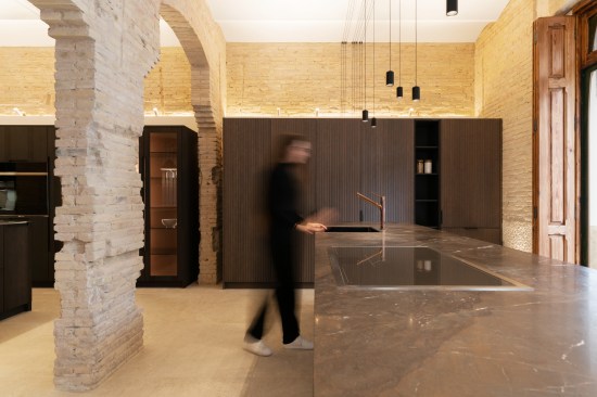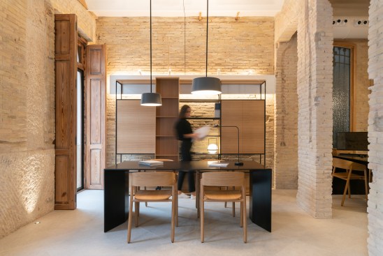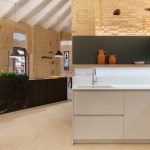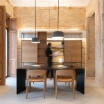Respectfully true to this idea by uncovering all of the original exposed brick walls, from the perimeter walls to the interior walls and the characteristic rounded arches. All of the scars created from the passage and underrunning of the antique installations are visible. With the same idea in mind, the original beams and their white beam fills are recovered, and the wooden picture windows are restored.