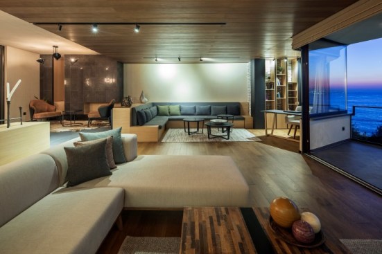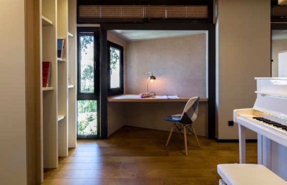 The house owner is a mathematician who lives alone whose daughter visits once a week and therefore the programme included a flexible room for her. The 3+1, 250 square meters house is designed for him considering his luxury lifestyle. Merging the entrance, kitchen and the living area into each other a straight corridor that can be reached through all of the rooms was designed. Via usage of glass and mirrors the transparency carried the vista to the interior of the house. The restrooms of the original planning had a big square meter which allowed us to re-plan the restrooms as a whole where we implemented a sauna and a jacuzzi space for the master suite bathroom.