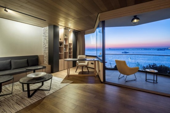Walking along the Istanbul Moda coastline there is a building which is striking by its architecture. The V shaped capsules on the facade derives the attention. Being curious about the outlook of the building, we were lucky as architects to get the chance to do the interior of the apartment. Considering the location and the view that the building has, the apartment floor is predominant to the vista of Istanbul the first intervention that was thought of was having the facade as transparent as possible.