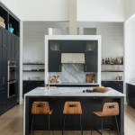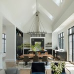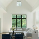 The residence’s space plan is broken into elements that are fully delineated in the architectural massing. High volume spaces make the home seem larger than it is, with an open central space for the living room, dining area and kitchen. An office/pantry is hidden behind the freestanding kitchen wall. Abundant windows and glass doors enhance this sense of volume, allowing natural light to stream in throughout the day. Because there is minimal molding, the interior’s architectural emphasis is on its clean, geometric lines. The stainless steel exhaust flue punctuates the precision of the architecture.