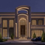 The elegant facade of the villa with large reflective glass windows, ensuring natural light and brightness of interior at the same time maintaining privacy.