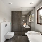 The children’s area is located half a floor up. The design is clean and modern, with oak parquet flooring. The master suite is located another half floor up and includes a bedroom, closets with book storage, a sizeable balcony, and a luxurious freestanding bathtub in the en-suite bathroom