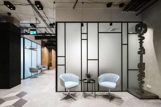 When choosing the interior fixtures of the office the architects chose Polish design elements. The modern and original lighting elements of the Polish company Chors. Furthermore the interior has been decorated with unique office furniture from the company Profim such as the Nu swivel seats and bookshelves from the company Balma.