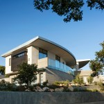 Located in the Santa Barbara foothills above a reservoir, this residence offers commanding, 180-degree views of the city and ocean below. To maximize these vistas, the home is laid out along a sweeping curve with expansive glass providing uninterrupted views.