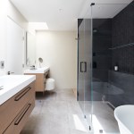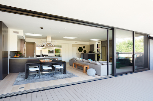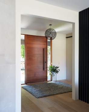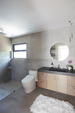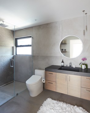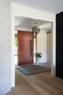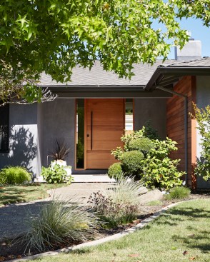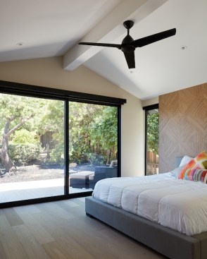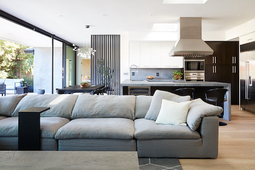 The homeowners had just completed a full kitchen remodel and wanted to modernize more of the house to match the new kitchen design. They asked to open up the dark and disconnected spaces that included closed-off rooms and a sunken living room, looking for an open design with more of a connection to the backyard. The floor in the living area was raised to create a consistent floor level and the rear of the house completely torn away, replaced with a taller flat roof design and a 42-foot length of sliding glass doors. The primary suite was also reconfigured to make better use of some dead hallway space and awkward bathroom and closet layouts. This was an example of transforming a typical ranch house into something special for homeowners who were willing to go all the way through with their master plan.
