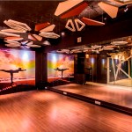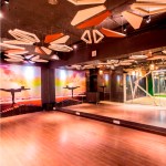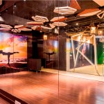 Glass partitions are used for the studios, making the overall design open and contemporary and adding an element of transparency to the space. The viewer is allowed glimpses of the activities going on inside the studios, yet is separated from them. There is a visual connectivity knitting the whole space together.