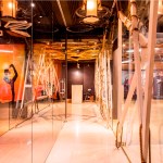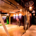 Of the various features already mentioned, the one that catches the eye are the bi-cycles. Hanging from the roof in the passage way, they draw the eye upwards where one also find unique lighting fixtures giving the space a sharp yet sophisticated look.