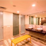 With the passage acting as the central axis, the spinning studio and the multipurpose hall were arranged on either side of it. The spa, massage rooms and locker rooms were located on the end of the passage, with international style interiors. A small café space was planned next to the reception and waiting area, welcoming the visitor inside.