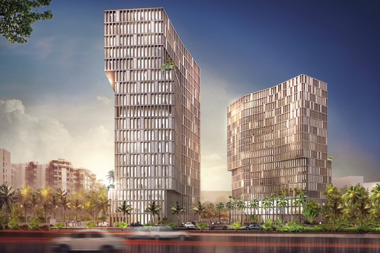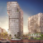 Blocher Blocher India planned a business landmark on Sarkhej Gandhinagar Highway in Ahmedabad, India. The exclusive mix of urban structure and top technological standards provides a haven for India’s modern business world. The approximately 70-meter-high twin towers house generous office space and conference rooms, as well as a casino and an exclusives clubhouse with fitness centre and wellness areas. The building itself plays with interwoven and shifted elements, which celebrate an urban dynamism. The façade is a grid of open, semi-transparent and closed rectangles. Depending on the time of day, the sun casts different shadows on the building envelopes, with an animating effect. Seen from afar, the multi-faceted design broadcasts exclusivity. Mondeal Heights is a business centre of international standing, adding a new accent to a metropolis with 6 million inhabitants.