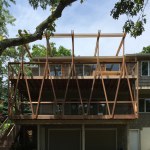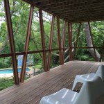 The reworked porches utilize simple 2×4 construction instead of the typical 4×4 columns achieving a much more delicate and sophisticated environments for both living floors. The top floor deck has a retractable sunshades while the first floor porch provides a cool respite from the heat of the day with a view of the pool bellow.