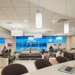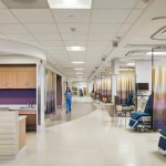 The seven upper clinical floors are based on modules and pods so that space can easily be increased or decreased between groups as needed. Rooms can easily swing from office to consult to exam rooms due to standardized configurations and provided infrastructure. Multiple points of entry were also carefully monitored due to patients who self-park, patients who take mass transit, and patients who are dropped off. With these conditions, came additional requirements for security and emergency preparedness.