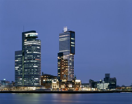 The name Montevideo recalls the tradition of warehouses that once stood here with exotic names such as New Orleans, Santos, Baltimore and Havana. The letter ‘M’ atop the building is an eight-metre-high weather vane. It stands for Rotterdam’s maritime tradition, the River Maas and, of course, the building’s name.