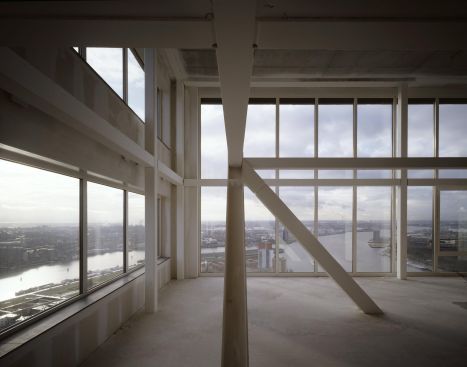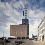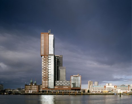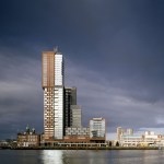 The starting point of the design was the ‘Holland-America feeling’ of the pier. The building is a composition of interlocking volumes, a section of which cantilevers over the quayside. Situated in the lower section of the building, restaurants and offices enhance the vibrant urban atmosphere, while the tower section references 1930s skyscrapers in New York, Boston and Chicago.Besides apartments, restaurants and offices, the building program includes guest suites, a swimming pool, gym and sauna. The structure is essentially hybrid, featuring an American-style steel structure on the lower two floors, a ninety-metre-tall typically Dutch concrete structure in the middle section, and a steel-structure top.
