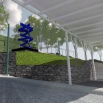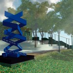 Las elementos macizos azules donde se insertan los triángulos que apuntan hacia abajo conforman la base estructural de la escultura y los interpretamos como la fortaleza que ha sostenido a nuestro pueblo a través de la historia.