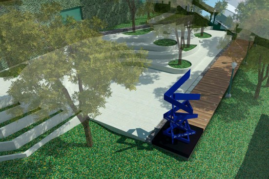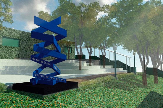El elemento agua simboliza la vida. La continuidad de la vida se expresa mediante el movimiento del agua que se recicla y fluye de los triángulos macizos azules. La pieza reposa sobre un espejo de agua negro y un texto acompaña a los bordes del espejo de agua: Del Libro de la Vida: “Recuérdanos para la Vida, D os, Tú que eres fuente de toda Vida, inscríbenos en el Libro de la Vida, por TI, D os viviente” Para concretar algunas de nuestras determinantes inspiradoras en el diseño de LENETZAJ NETZAJIM podemos enumerar las siguientes: la relación de D os con el pueblo judío, la idea del escudo protector de David significando fortaleza, protección y continuidad del judaísmo, y cada triángulo del Magen David representando al hombre y a la mujer en su unión como creadores primogénitos de la continuidad de nuestro pueblo.
