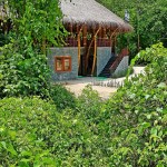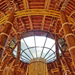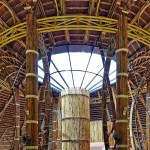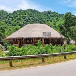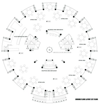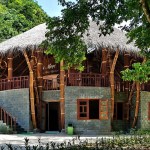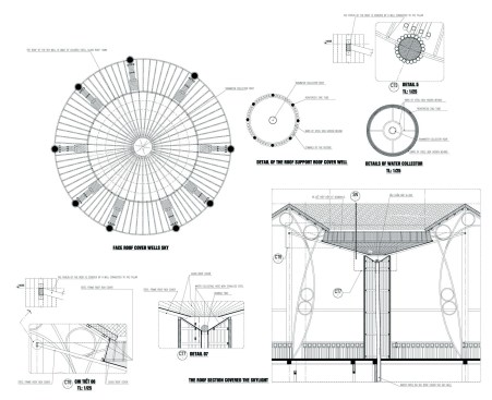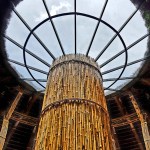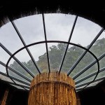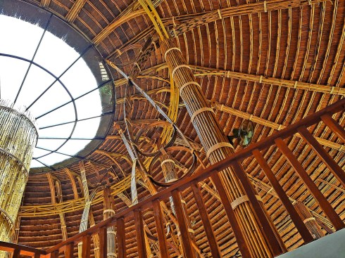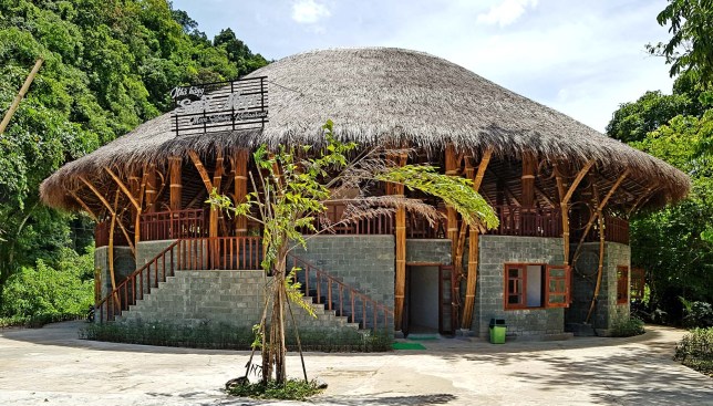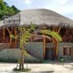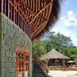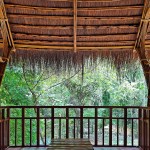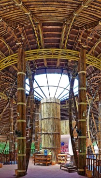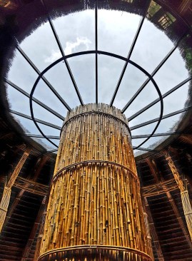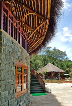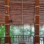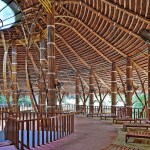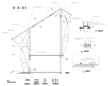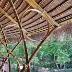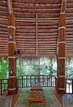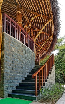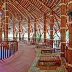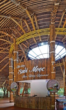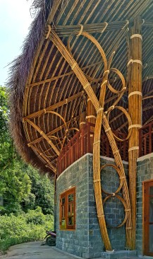 The 2nd floor is a reception area for visitors to combine the refreshment area, restaurant, used reinforced concrete pillars combined with nulgar bamboo Tree material, Leaf leaf, reinforced steel frame system. .
