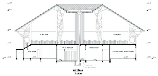On the overall architecture, the project uses raw materials and raw materials to match the modern materials to ensure the construction is sustainable because the construction area is the place where frequent floods and storms annually.