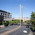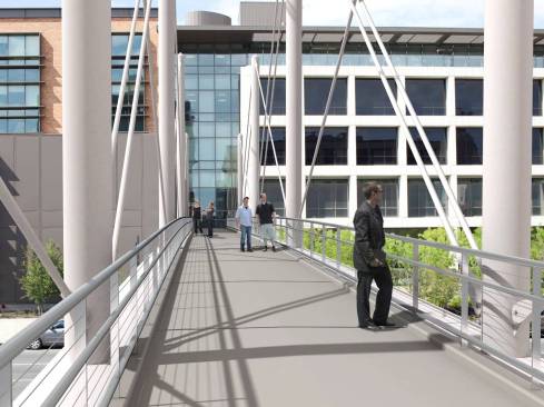 The Moody Pedestrian Bridge will be a unique structure that will connect two buildings conforming the Moody College of Communication, University of Texas at Austin. The pedestrian bridge is characterized by a series of slender steel towers that vary in height and scale creating an elegant statement along one of the major avenues surrounding the campus. The overall length of the bridge is approximately 300’ with a high tower of 65’ located at a median location which will mark the bridge crossing from a distance and create a gateway for students and visitors. The pedestrian bridge compliments the architecture of the Bello Center, one of the recently completed buildings of the College of Communication. The bridge will be illuminated at night.