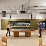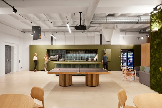 Architectural obstacles and other inconvenient must-haves were embraced and levered through design, for example with a bespoke ping-pong table as a centerpiece element and a column being wrapped around living moss. Unique details, branding elements and other cool gimmicks give an additional layer of personality to the space, playing with humor within the spectrum between corporate finance and cheeky start-up.