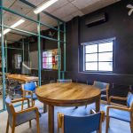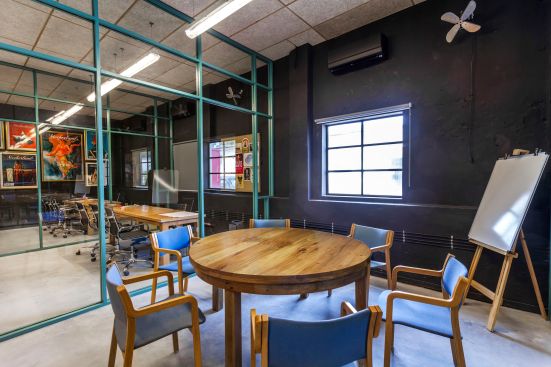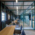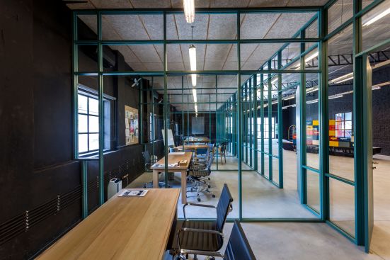 Considering the preservation format, the material palette was kept simply restricted to timber and glass. The hand-built partitions made of simple plaid glass with intermediate sleek timber sections have been used to allow the spaces to be visually connected with each other and the main workshop area. Meanwhile, the acoustic ceiling that ensures the sound isolation within the spaces has been designed using wood wool panels with a layer of micron insulation sandwiched between them. A layer of bubble wrap and aluminium foil insulating panels have been topped on the asbestos ceiling to reduce the heat gain in the building.