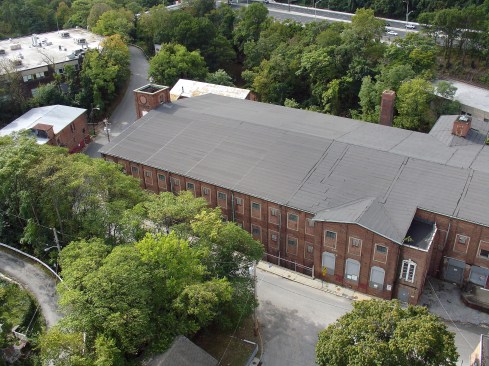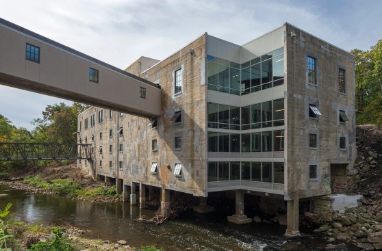 Because a single bridge was the only egress from the Warehouse Building on the other side of the river and a rail line prevents any other exits, a new bridge was hung between the primary buildings.