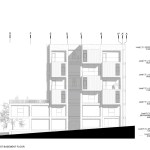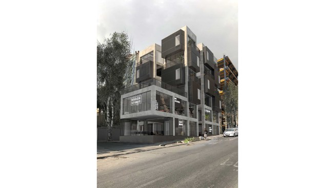 Mozhdeh office building is located in a ​​440 square meters site on Mozhdeh street in the former location of Niavaran police station. The client asked a commercial unit on the ground level with 80% occupancy and providing administrative units in upper stories with 60% occupancy. After the initial study, the issues that the design team considered, was program, tectonic and construction norm. The common plan of administrative and commercial projects for maximum use of the land causes the inefficient plan, so we have decided to change the project’s program. Due to the use of 60% occupancy plus two meters boundary, we had some void to reduce from the construction area to reach the 60% occupancy level and this solution, in addition to providing adequate lighting, could create event spaces within these voids for each office unit on the stories. These L-shaped voids cut the volume of the building, which the separated volume playing the role of V.I.P ROOM for
