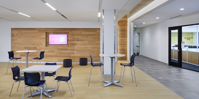 By combining Adult Education and Transition Plus into a single facility, classrooms and specialty spaces could be tailored to the programs’ unique needs while also allowing them to share functions that overlapped: communal zones, meeting rooms, staff areas, and teacher collaboration. The design results in a project that is a welcoming learning environment for adults, has space that is both flexible and specialized, and is a place that fosters an active and inclusive sense of community.