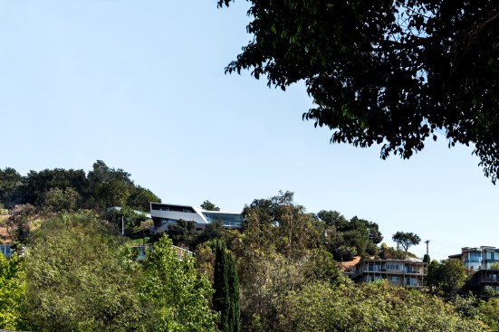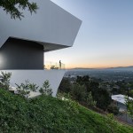 Programmatically, the 5,000 SF building is split into two main levels, horizontally organized along a shifted east-west axis. The restrictions imposed by the planning and building regulations provided strenuous challenges to the site planning of the project as it pushed the building downhill, over the ridge. This coupled with height and view shed restrictions, provided for a narrow and steeped profile for the building, particularly on the entry façade. This, however, became a desirable aspect of the project, as the building muted itself towards the intrusion of spectators on Mulholland Drive. The project traded the lazy concept of material agglomeration in favor of simplicity, yet spatial significance to balance its budgetary goals. The project has aimed to redefine the intentions of the Mulholland Scenic Corridor Specific Plan with its fundamental principles.