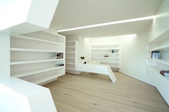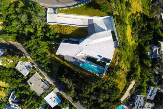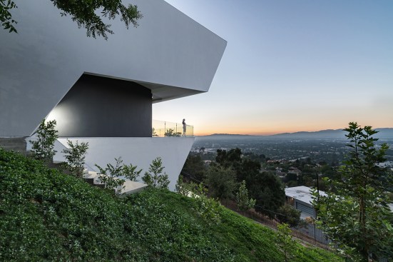 The house on the cusp of a fold in the Hollywood Hills identifies the differential complexity of the steep hillside as its functional and formal generator. The stark, rigid appearance enters a dialogue with the landscape, defining itself as a real object through the process of alienating its context. This alienation is at the same time natural in the way a rock formation identifies itself through the process of unearthing. A matrix of complex parameters was identified early in the process of design as the programmatic needs, budgetary requirements, code regulations, environmental constraints and formal aspirations gradually came to being. These parameters superimposed forces on the raw massing of the project that developed the final form through an evolutionary iterative process.