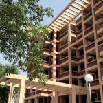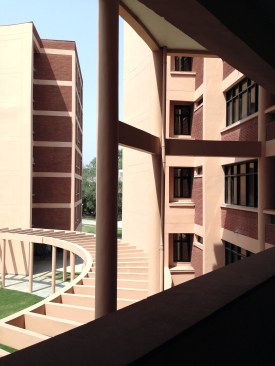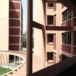 The Complex has been designed with a simplistic and minimalist approach. The layout plan comprises three main components viz. two built masses and an open space. The two masses – each building of 6 stories on a stilt – encompass a large courtyard in the center. After deliberating upon many layout & siting options, the buildings have been planned in oblique ‘Y’ geometry, in such a manner that none of the apartments overlook into the other thereby giving a sense of privacy and security to each apartment. At the same time, each apartment gets full view of surrounding greens and the campus vista. The two arms of the Y-shaped building extend towards each other thereby containing a large landscaped courtyard in between, with entrance punctures towards the east and the west.