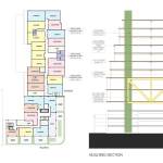 The building facade is a combination of a reskin of one of the existing structures and a new skin on the additions. Wood cladding unites the three structures into one new complex and emphasizes the lightness of the additional massing to the existing structure. Aluminum framed floor-to-ceiling windows add to the overall layered and transparent feeling of the building and wood slatted screens provide shading and privacy. Concrete piers are skinned in channel glass to emphasize their verticality while lightening the heavy structure behind. The major challenge of this development was to maximize the available buildable area offered by new zoning increase without demolition of the existing building as well as adding new floors without major reinforcement of the current building foundations. In collaboration with a structural engineering expert, the design team demonstrated that using a Mass Timber structure, which is inherently lighter than concrete, would allow for a multi-story addition with minimal structural intervention to the existing building. It would only require the structural intervention of increasing the shear capacity of the building. CORE provided options for both a 3-story addition and a 5-story addition to the existing structure, creating schematic unit layouts, unit counts, and preliminary massing concepts for the building.
