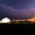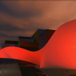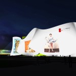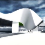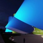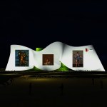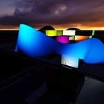 “The sheet of paper” will be made by material named “Corian“ by Dupont Company and will have an interactive features. In view of the fact that the building is situated between two rivers on a peninsula, it is the main visual point of view from one of the city’s main roads, but also from the opposite shores of the river. For this reason “the sheet of paper” would be used for multimedia purposes. Pictures, commercials, movies, fragments from the exhibition inside the building and etc. can be projected there. “Corian Dupont” is a material with an option to be semi translucent. In reality the surface will be white but due to its little transparency and using backlight, the light will change the color of the surface.