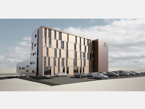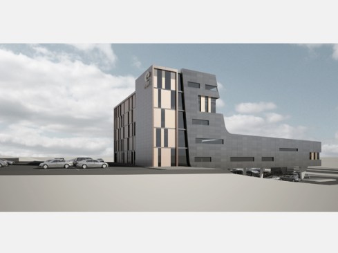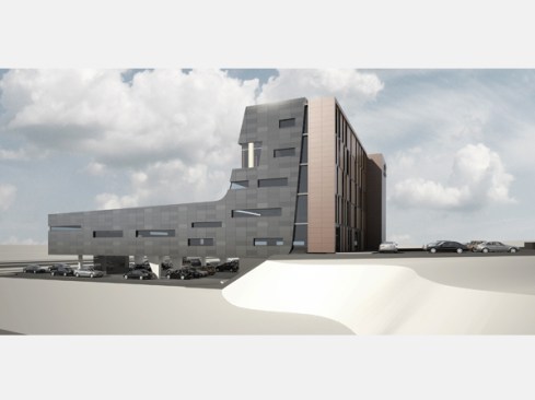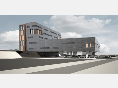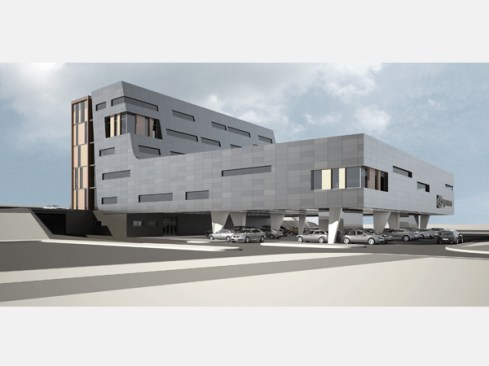 Complex relief, small site, plenty of functional spaces (shopping center, café, boutiques, health club, offices) that require large areas and relevant amount of parking lots determined the space planning decision of complex. Maximum employment of the terrain features of the site with engineering of double-leveled access into the building permitted to locate all necessary spaces reasonably. There is an entrance into the building from the first level. The entrance into the entertaining-sport-recreational part is designed on the second level. Just under the shopping space, on the first level, is located the first parking connected with the parking on the second level.