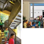 Water conservation was also important to the school’s mission. So Studio 27 designed a rainwater harvesting system to capture runoff from the roofs and store it in a 25,000-gallon cistern beneath the main garden court, providing enough water to irrigate the gardens and flush the toilets. A central water plant in the basement of the old building pumps both potable and non-potable water throughout the campus.