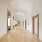 The result of this latest collaboration is a sensitive restoration and reworking of the archaeological museum on the second floor of a wing of the existing monastery. The architects preserved plaster walls and masonry window surrounds in the vaulted main