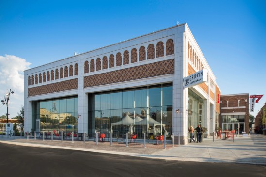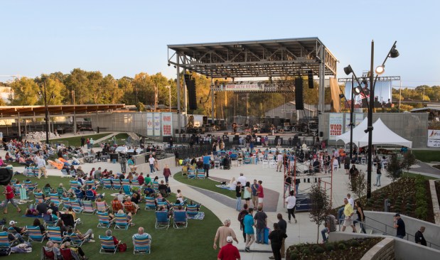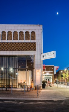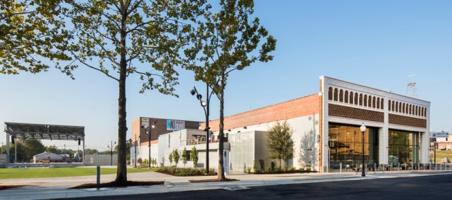 El Dorado, Arkansas has a rich history as a former oil boomtown with uniquely historic architecture, and a well-established arts and entertainment community, which includes the South Arkansas Symphony Orchestra, the South Arkansas Arts Center, and numerous music festivals. Community leaders sought to anchor these community assets into a regional draw as a cultural performance mecca. DLR Group’s master plan and design leverages existing historic assets, including the National Register-listed Rialto Theatre, five additional legacy structures, and new construction. The resulting design strategy creates a multi-venue downtown arts and entertainment district that preserves and celebrates the unique identity of El Dorado while attracting contemporary audiences and future generations. “The master plan resurrects a dense cluster of historic buildings through the co-location of community, art, and performance venues,” explains Principal Matt Janiak, AIA, LEED AP. “Enlivening the once-forgotten intersection at Jefferson Street and Locust Street leverages synergies among venues for the community’s enrichment.” Implemented in phases, the 125,868-SF site includes a 7,000-patron festival venue/amphitheater; a 2,000-seat indoor music venue; a 100-seat black box/multi-purpose room; an 850-seat multi-use theater; a restaurant/club with a stage; a visual arts facility; a farmers’ market; a children’s activity center; a park; and considerable site improvements with new structures to support festivals. The plan re-imagines three abandoned, historic, 1920s structures, all connected at ground level by new construction. Phase 1 built out the new amphitheater and support facilities, and transformed the historic Griffin Auto Building. This dual-level, historic filling station and repair shop has been adapted as a restaurant and flat-floor, indoor music venue. Future phases will renovate the Rialto Theatre with an expanded stagehouse to host the South Arkansas Symphony, local and regional performing companies, and to serve as a presenting house for traveling shows. Featuring a flexible pit/forestage lift, the Rialto can convert into a black box. The McWilliams Building, a four-story, former furniture store/warehouse, will be adapted as a center for visual arts, artists-in-residence, arts education programs, and offices. The Trinca Building, formerly a single-story bus depot, will function as a reception space. The project utilized state and federal historic tax credits for project equity. DLR Group provided master planning, architecture, interior design, MEP and structural engineering, theater technical, audiovisual, acoustical, and IT/security services.