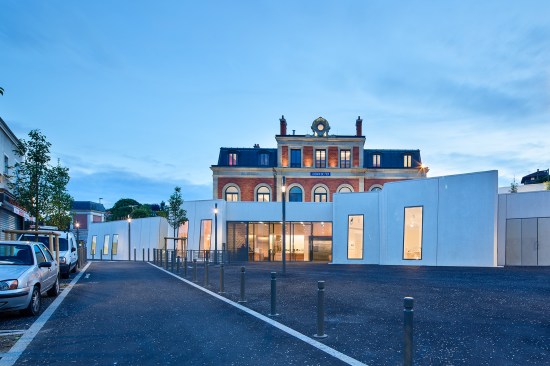 Un monolithe en béton teinté complète la gare existante de Suresnes pour accueillir le musée René Sordes, consacré à l’histoire de la ville et du logement social.