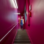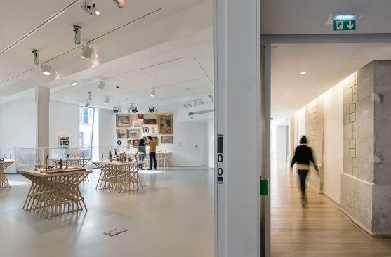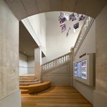 Pour ce musée, nous assumons la confrontation d’une architecture contemporaine et d’un bâtiment historique par un dialogue de couleurs : celle de la pierre, douce et naturelle dehors, et celle de la brique dans un camaïeu vif et chaleureux dedans.