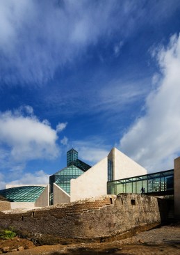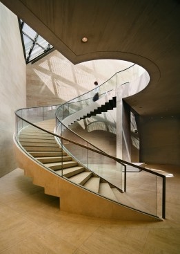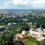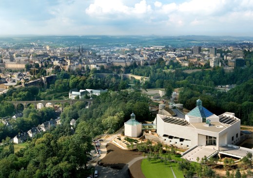 Occupying 2,900 square meters of exhibit space on three levels, this V-shaped museum is cantilevered over the ruins of Fort Thungen, part of defensive system that once secured Luxembourg’s reputation as one of the most fortified cities in Europe.
