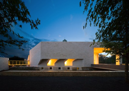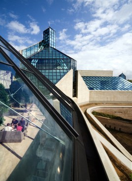 The museum is superimposed on the outer embankment that originally surrounded the arrow-shaped inner fort. The eighteenth-century walls merge with the new building, acknowledging and continuing the rich history and use of the site. The ground floor houses a glass-enclosed winter garden and sculpture court, both skylit column-free spaces that connect to a central reception hall available after hours for museum and state functions. The two levels below grade house exhibition galleries and a 128-seat auditorium.