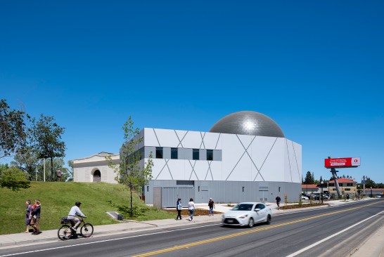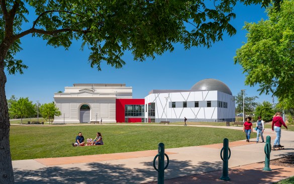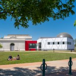 Vacant for over half a century, the structure underwent a complete historic rehabilitation and the construction of a new floor level inside. A new two-story addition projects from the east side, containing a lobby, classrooms, offices and a cafe. A 120-seat planetarium is prominently on display with a zinc-clad hemispheric dome rising above the building’s mass. As representation of our place in the universe, the facade and building mass are sectioned by multiple planes, creating continuous vector lines that extend across the building and site. From satellites to world landmarks, the lines form connections with local and global points of interest.