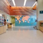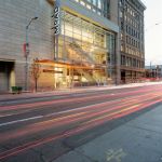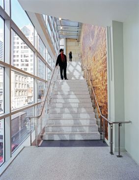 The entry is marked by an “intervention” expressed through the intersection of the orthogonal city grid and the angled axis of the orange canopy that visually guides visitors into the Museum. The design seeks to engage the public starting at the street level. The themes and content of the Museum are subsequently incorporated into the architectural design of all three floors, reinforcing the seamless integration of architecture and content.