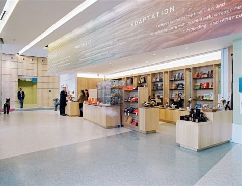 The organization of the Museum’s program is informed by the pre-existing tenant allocations made by the Tower developer and architect. Due to the limited ground floor area, the ticketing and museum store were designed as an open, flexible environment. A single fluid space, the ground floor is readily adaptable to a variety of activities including reception / pre-function for the immersive exhibits and multi-purpose gallery spaces above.