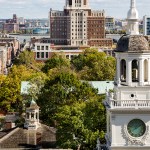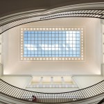 Our design organizes the Museum around a skylit central interior atrium. The ground floor will accommodate a multi-use theater and a changing exhibition gallery. Within the atrium a grand elliptical stair will take visitors up to 18,000 square feet of galleries and a theater dedicated to the exhibition of George Washington’s war tent, one of the Museum’s most dramatic holdings. A clerestory monitor rendered in Alabama limestone accentuates the Museum’s verticality and floods Liberty Hall, a third-floor event space intended for conferences, symposia, and social events, with light. Two broad terraces overlooking the First Bank command views west to Independence Hall and the modern-day Philadelphia skyline. The building provides state-of-the-art storage and conservation spaces and follows best practices for sustainable museum design to target LEED Gold certification.