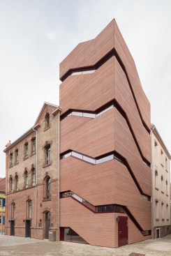 The former Tonofenfabrik (Clay Oven Factory), is situated in the historic centre of Lahr in Germany, close to the remains of the medieval castle ‘Storchenturm’ and the medieval town wall. In danger of complete deterioration, the listed building has been reinvented as a City Museum utilizing this strategic urban location to create a destination for tourists and residents alike involving them with the history and heritage of Lahr in a way the old museum in the cities park was never able to. The old industrial brick building was not only transformed into a modern museum, but it’s somewhat incomplete ‘L’ shaped volume has been completed by a new stair tower forming a coherent ensemble of old and new.