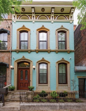 Completed in 2021, the four-story, 4,000-square-foot house stands as proof positive of how well ecological sensitivity and historical preservation can work in concert. The adaptive-reuse project began with an archetypical specimen of the Over-the-Rhine streetscape: an 1870 row house, fronted in brick and decorative details, with a narrow yard behind it. Hoping to increase the usable space, the architect and his clients decided to add an extension to the back as well as an upper-level addition—immediately requiring tough decisions about competing priorities.