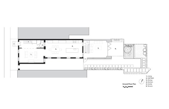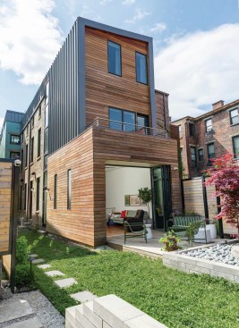 “The design seeks to respect the historic architecture and allow contemporary intervention, while achieving near net-zero energy performance,” Rathod says. Topping the aluminum-clad roof with solar panels and choosing wood and high-efficiency windows for the rear addition, the Sol team used eco-friendly materials to articulate a distinct identity for the new portions of the house that still complements the original.