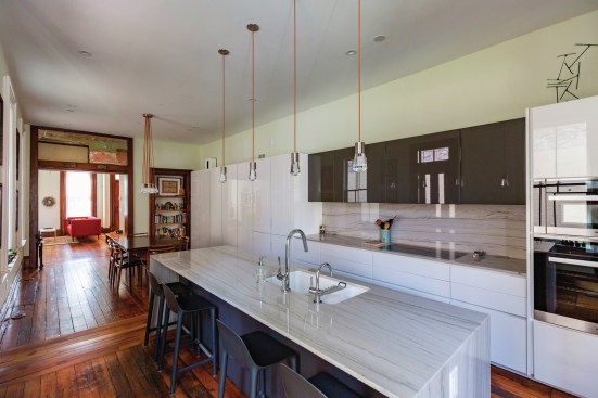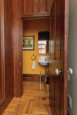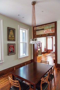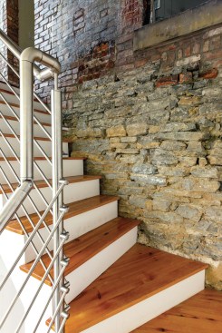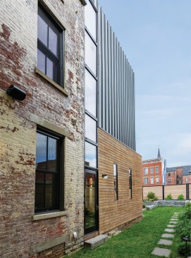 The sensitivity to context went further. “Soon after conceptualizing our design for the addition, we invited the Over-the-Rhine Foundation to critique our response for its historic appropriateness,” Rathod says. Soliciting input from other Over-the-Rhiners, Sol and company were encouraged to trim the width of the extension volume to better accord with the building’s original footprint. They took the same painstaking steps with the interior, which still boasted a substantial amount of period detail; determined to keep it, the designers removed the ornate moldings, panels, and mantels, applying new, high-performance insulation and then reapplying all the ornament precisely as it had been pre-renovation.